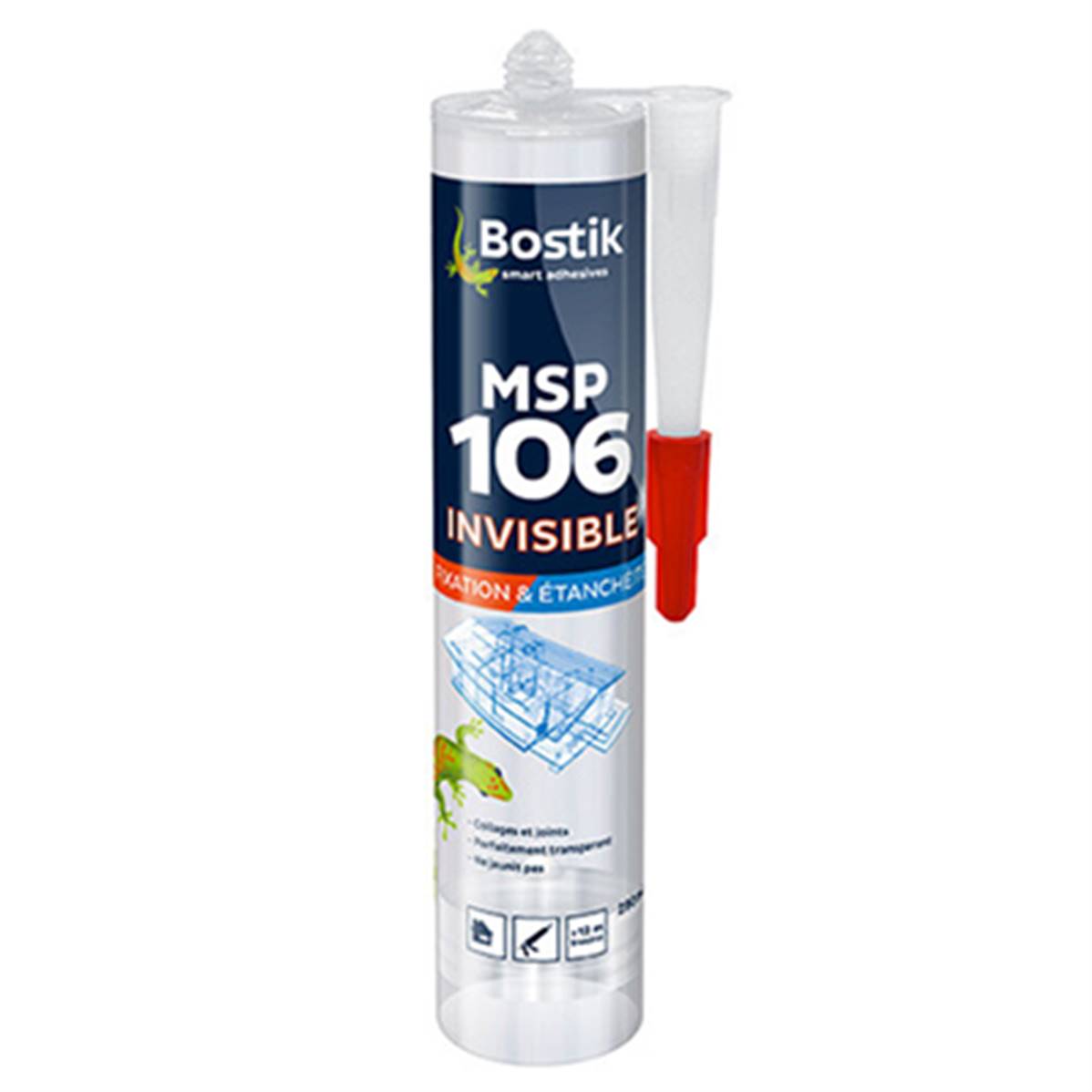 CARTOUCHE COLLE MASTIC POLYMÈRE MSP 106 TRANSLUCIDE - 290 ML-MASTIC ULTRA POLYVALENT-USAGE INTERIEUR - ÉLÉMENTS TRANSPARENTS SUR EUX-MÊMES OU SUR TOUT AUTRE SUPPORT